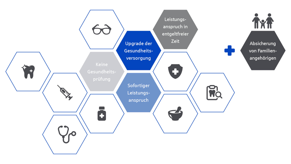 - Ziel ist es, die Gesundheit und das Wohlbefinden der Mitarbeiter zu fördern und ihnen einen attraktiven Zusatzschutz zu bieten.